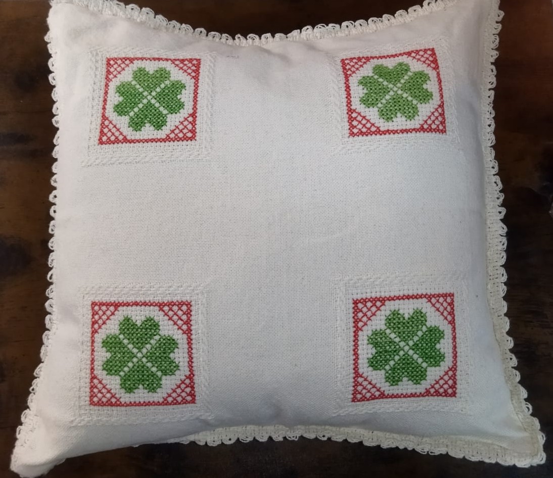 Almofada da sorte 24,00 € Desconto de %. Partilhar Comprar Contactar 1 unidades em stock Almofada personalizada com trevos em ponto cruz, pronta para entrega. 45x45 cm Para outras opções entre em contacto connosco pelos meios disponíveis.