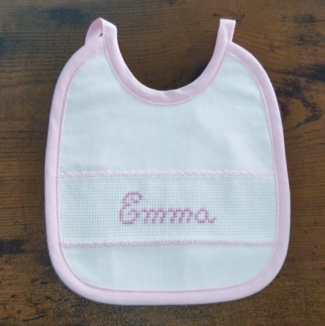 Babete "Emma" 7,00 € Desconto de %. Partilhar Comprar Contactar 1 unidades em stock Babete personalizada com "Emma" em ponto cruz, pronta para entrega. Para outras opções entre em contacto connosco pelos meios disponíveis.