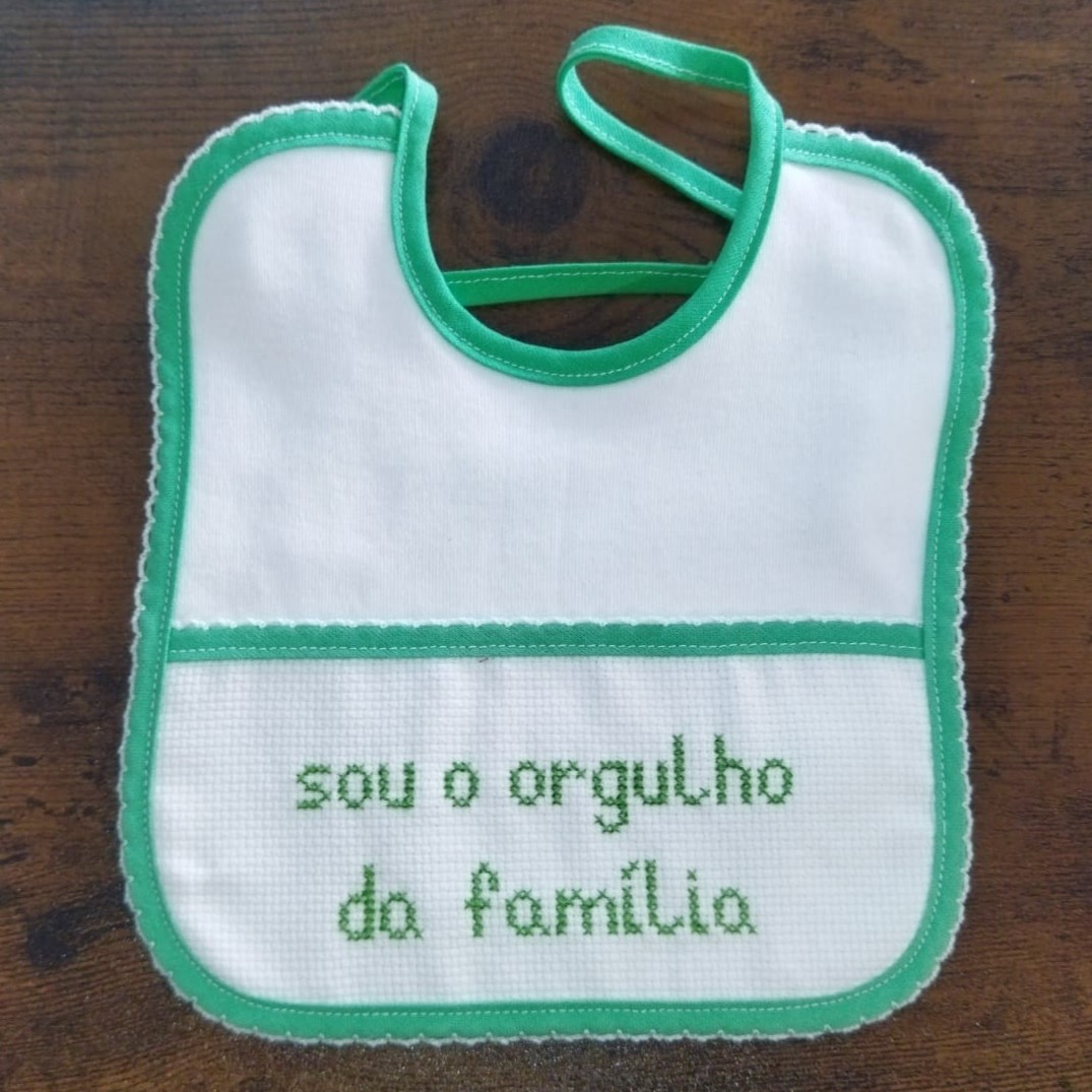 Babete "família" 7,00 € Desconto de %. Partilhar Comprar Contactar 1 unidades em stock Babete personalizada com "sou o orgulho da família" em ponto cruz, pronta para entrega. Para outras opções entre em contacto connosco pelos meios disponíveis.