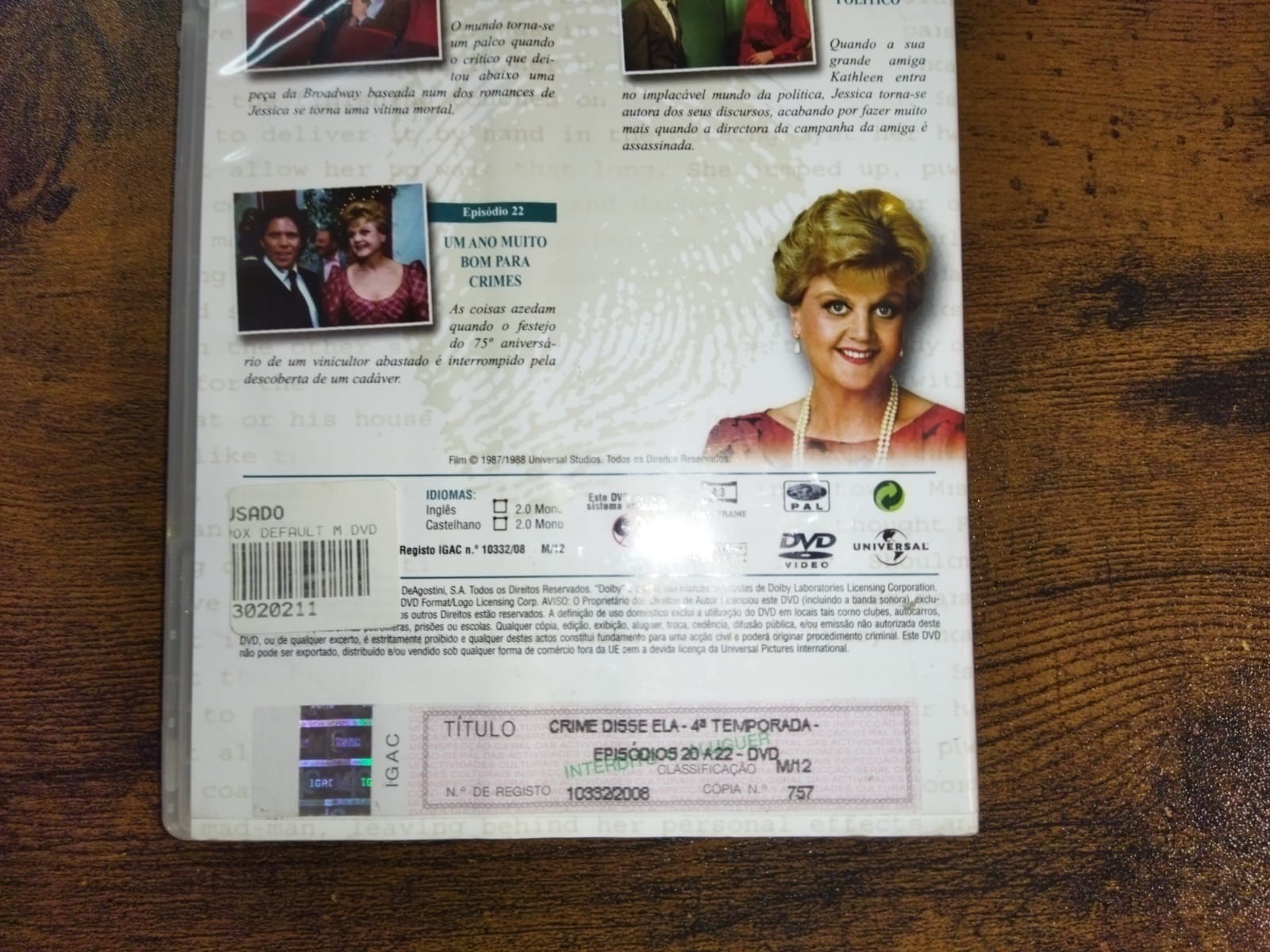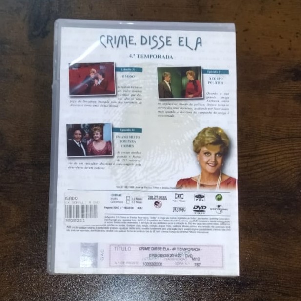 • Parte traseira do DVD da série Crime Disse Ela com imagens e texto descritivo em português