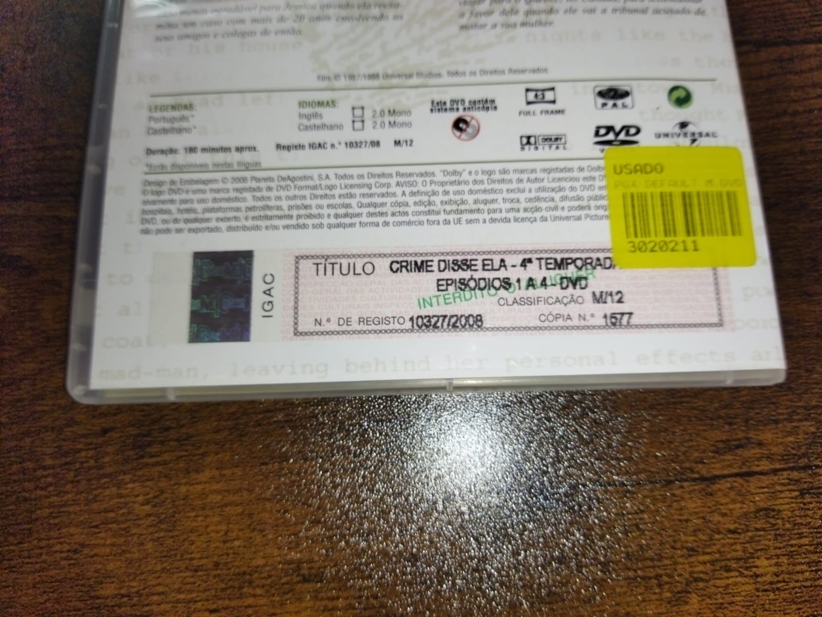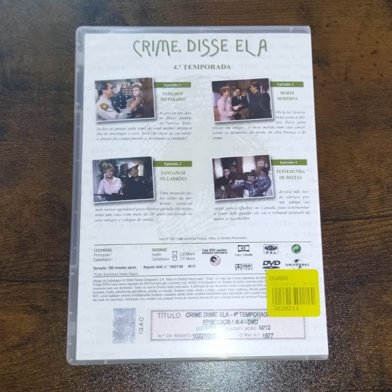 • Caixa de DVD da série Crime, Disse Ela temporada 4, vista traseira com descrição e imagens