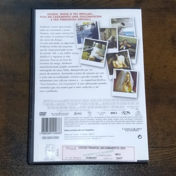 • Capa de DVD do filme Dois Estranhos, Um Casamento com texto em português e personagens a correr