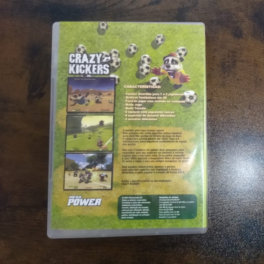 • Capa traseira de videojogo Crazy Kickers com texto e imagens do jogo