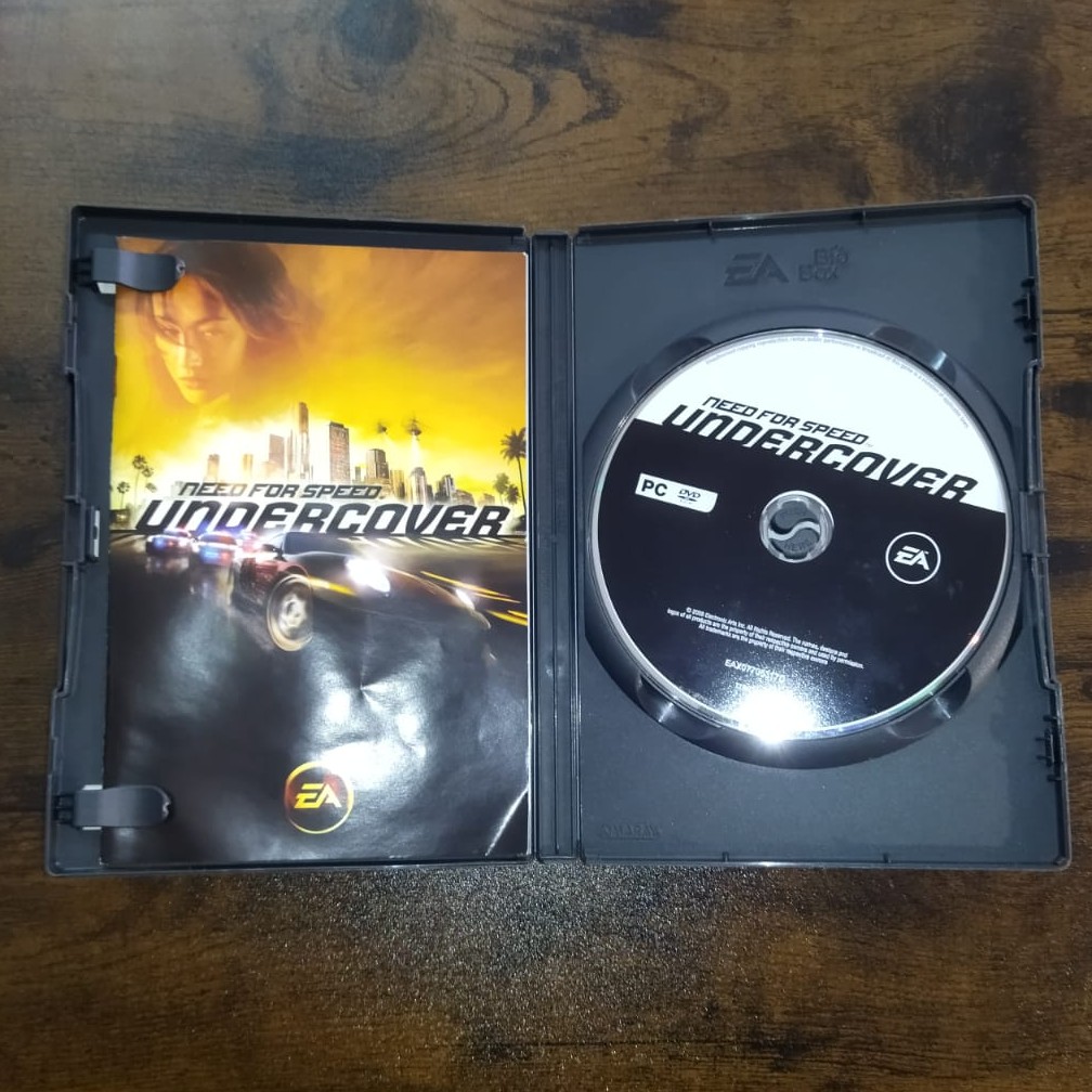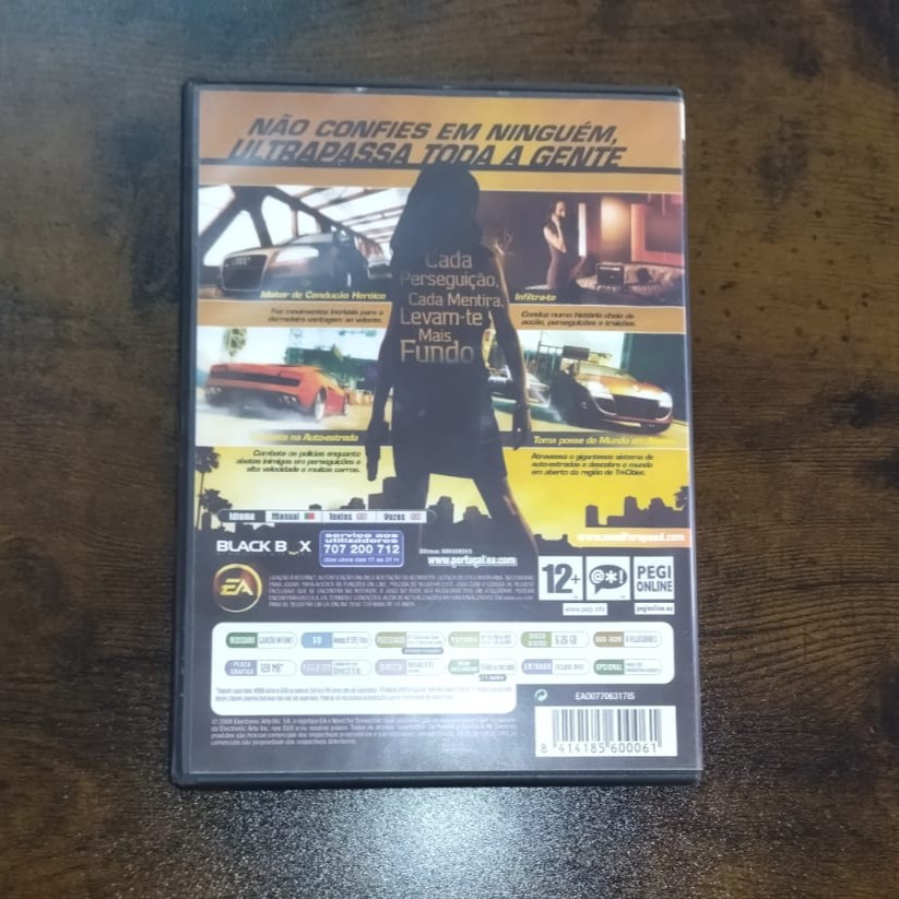 Caixa do jogo PC Need for Speed Undercover com capa amarela e preta mostrando carros e edifícios